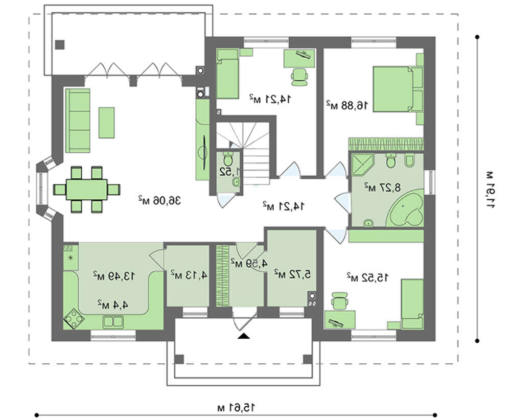проект в зеркальном отображении позволит органично вписать дом в окружающий ландшафт.