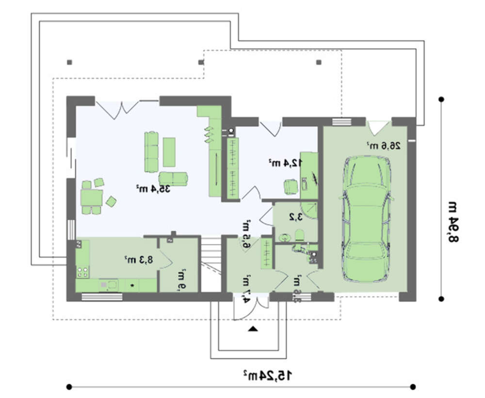 проект в зеркальном отображении позволит органично вписать дом в окружающий ландшафт.