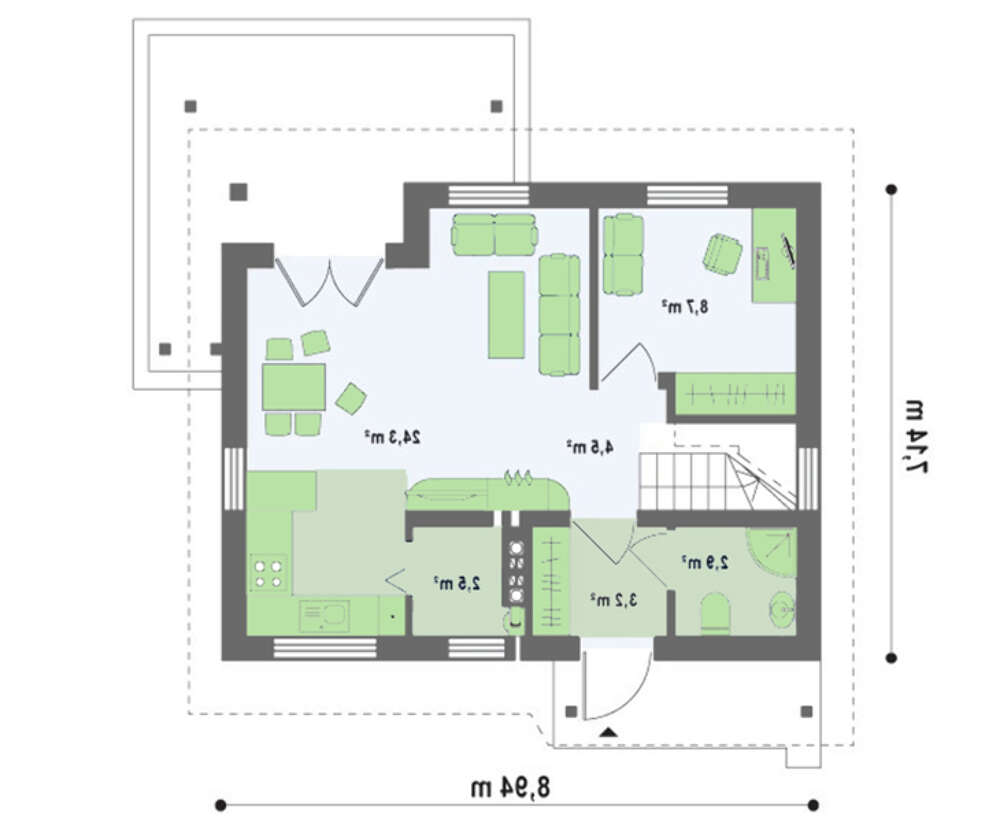 проект в зеркальном отображении позволит органично вписать дом в окружающий ландшафт.