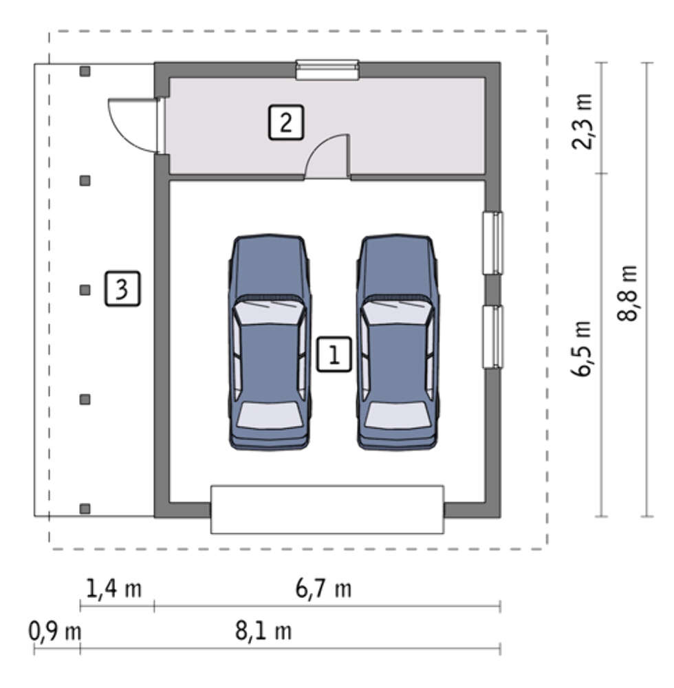 Проект компактного гаража на 2 авто с навесом | Архитектурная студия ДОМ4М