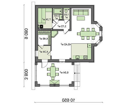 Проект содержит три раздела – Архитектурный, Конструктивный и Инженерный: водоснабжение, отопление, вентиляция, канализация, электроснабжение (приобретается за дополнительную плату) + Пояснительная записка.