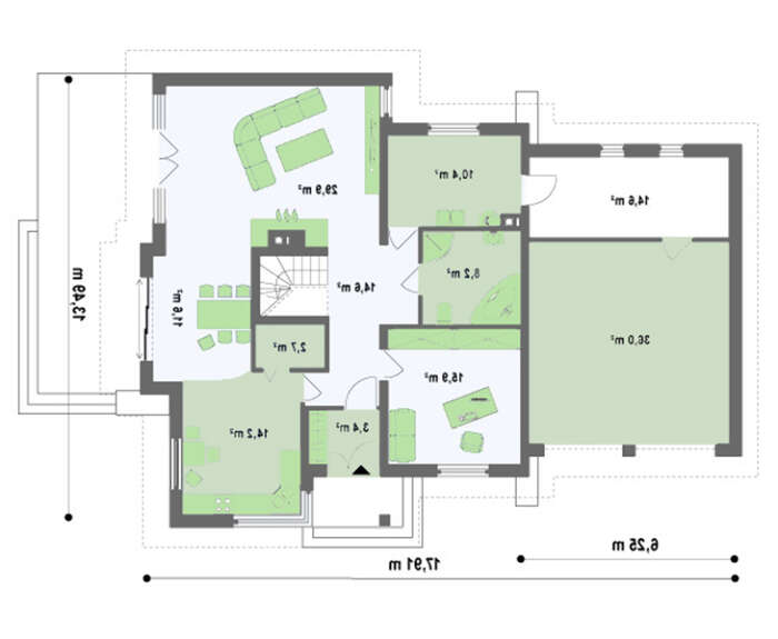 • 4M382 Проект коттеджа с гаражом для двух машин и террасой
