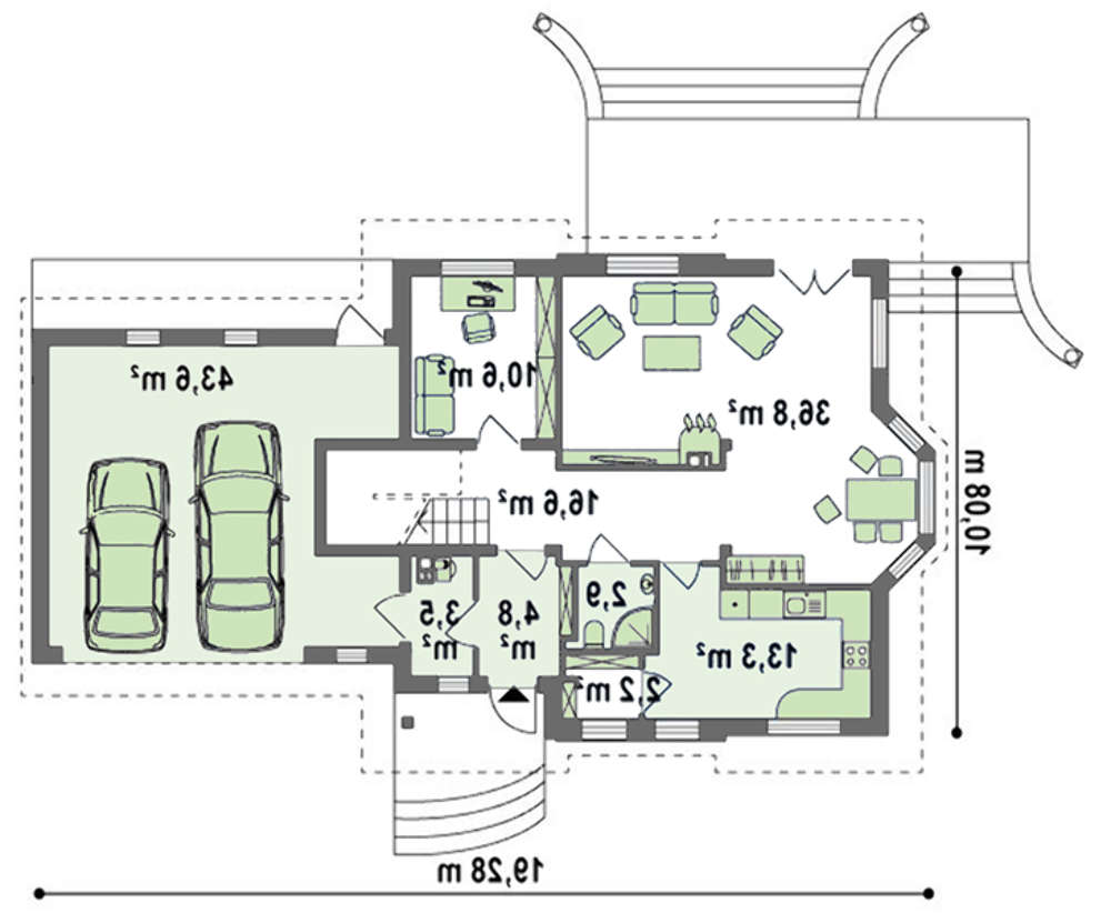 проект в зеркальном отображении позволит органично вписать дом в окружающий ландшафт.