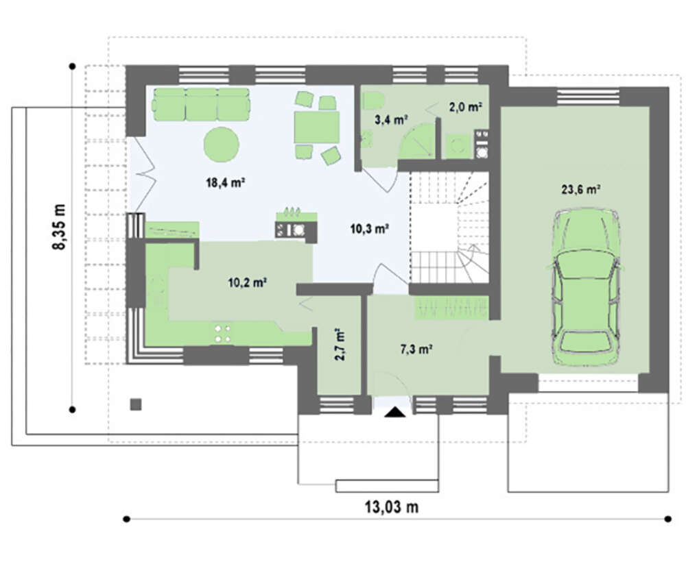 Проект содержит три раздела – АрхитектурныйКонструктивный и Инженерный: водоснабжение, отопление, вентиляция, канализация, электроснабжение (приобретается за дополнительную плату) + Пояснительная записка.
