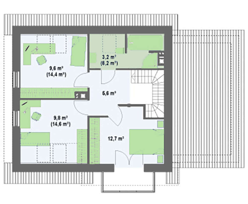 Проект коттеджа с гаражом, красивой мансардой и боковой террасой 4M396