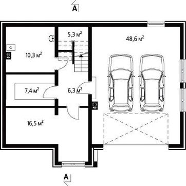 Проект коттеджа с гаражом на два авто в цокольном этаже