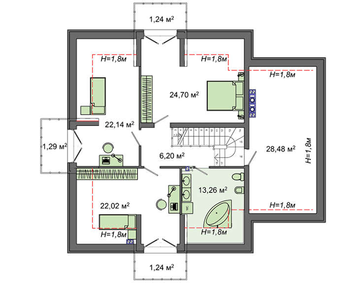 изменить высоту потолков. Хотя все наши дома спроектированы с оптимальной высотой помещений 2,8 м, некоторые заказчики считают, что высокие потолки – это дополнительный уют и комфорт