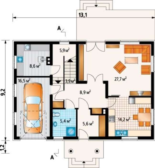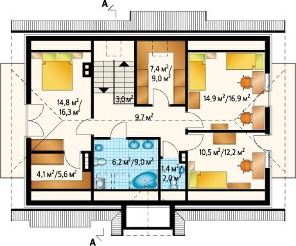 Проект коттеджа с мансардой 9 на 13 4M3355