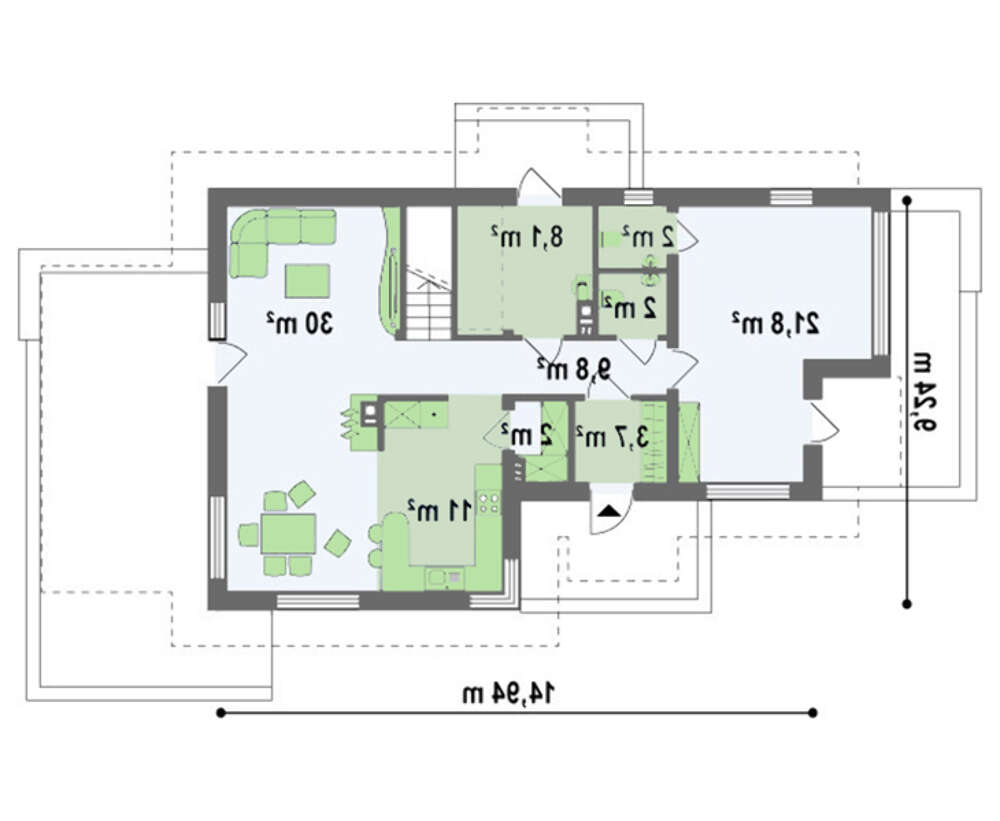 проект в зеркальном отображении позволит органично вписать дом в окружающий ландшафт.