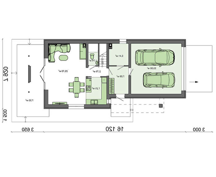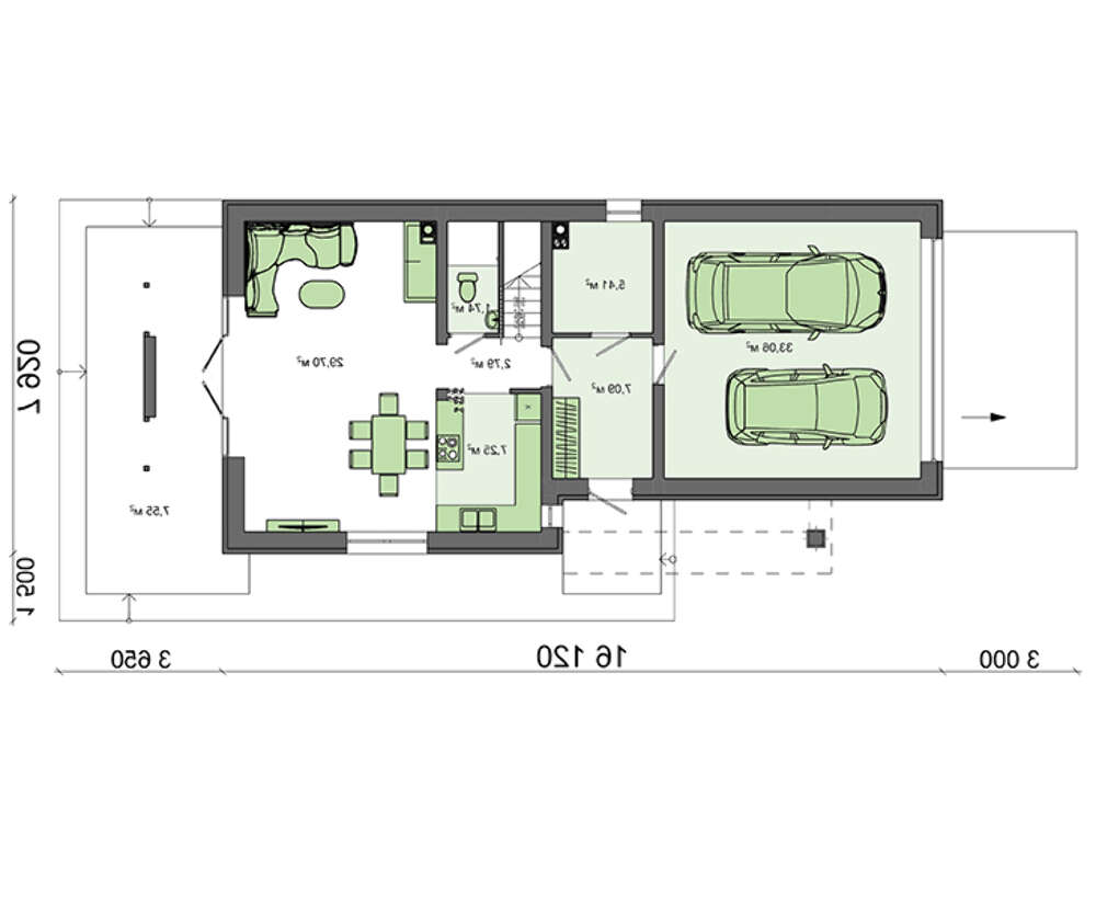 • 4M344 Проект коттеджа с мансардой и гаражом для узкого участка