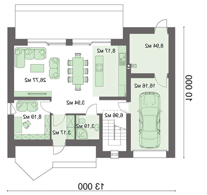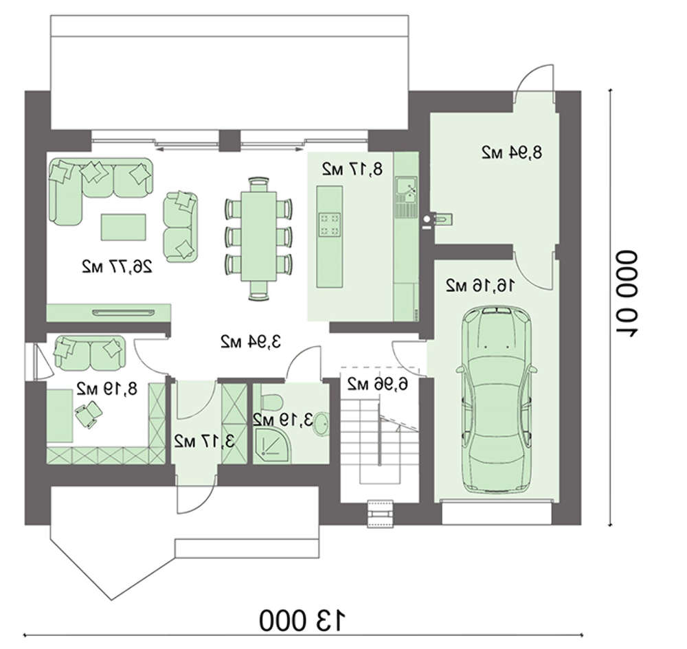 В проекте предусмотрены все необходимые для создания комфортных условий помещения. За счет общего пространства, студия — кухня приобрела значительные размеры. Предусмотрены гардеробы и просторные санузлы. Провести деловые переговоры или обсудить последние новости можно в небольшом отдельном помещении первого этажа. Размещенный под кровлей дома гараж, позволяет жильцам не волноваться о том, куда определить на ночь транспортное средство.