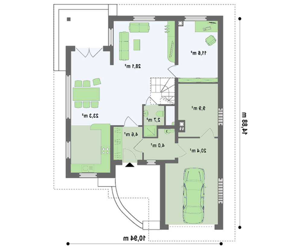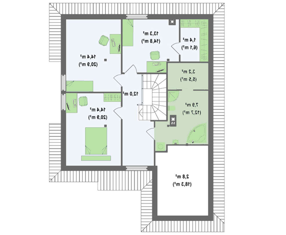 Проект коттеджа с мансардой, техническим помещением, дополнительной спальней