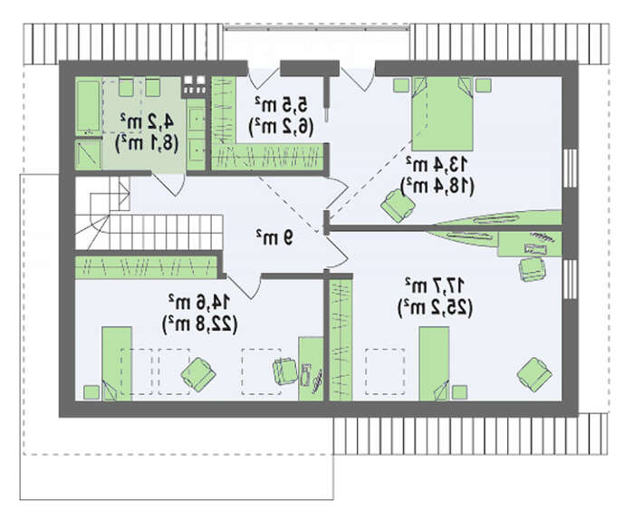 • 4M080a Проект коттеджа с мансардой в строгом стиле