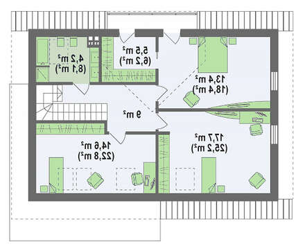 Для ножек помладше отдых предусмотрен на втором этаже. Три компактные и уютные спальни ждут. Та, что побольше и с гардеробом под запасы вещей, конечно, подойдет маме с папой. С их уютного балкончика можно каждый день любоваться рассветами или закатами, в зависимости  от того какими боками дом развернут к солнцу.