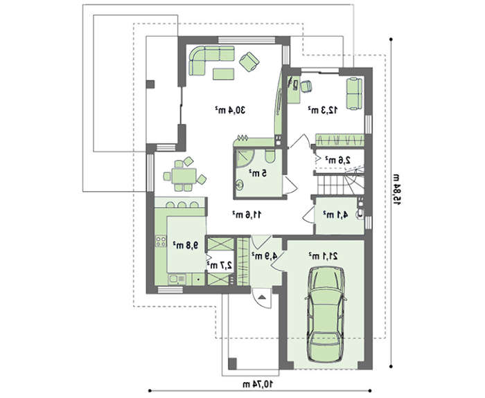 проект в зеркальном отображении позволит органично вписать дом в окружающий ландшафт.