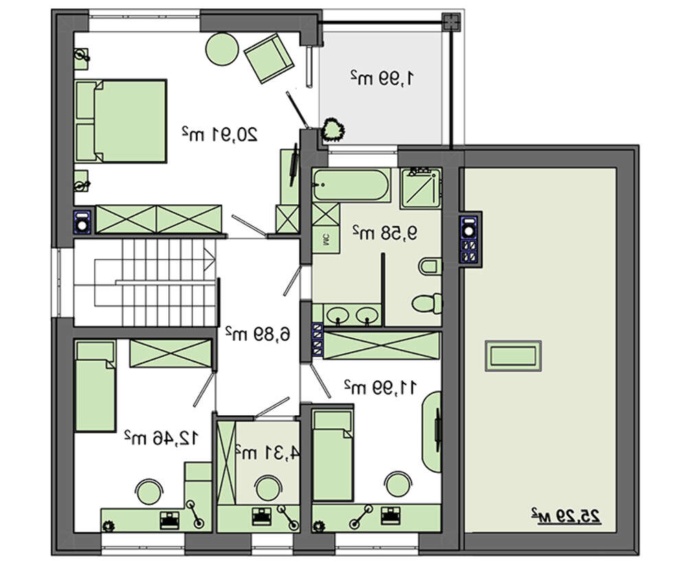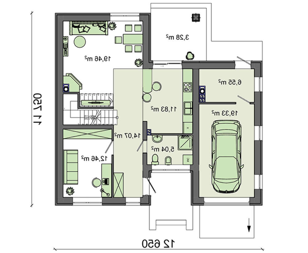 проект в зеркальном отображении позволит органично вписать дом в окружающий ландшафт.