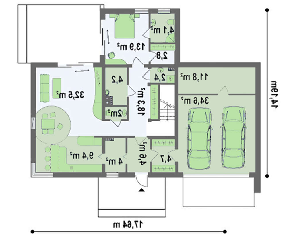 проект в зеркальном отображении позволит органично вписать дом в окружающий ландшафт.