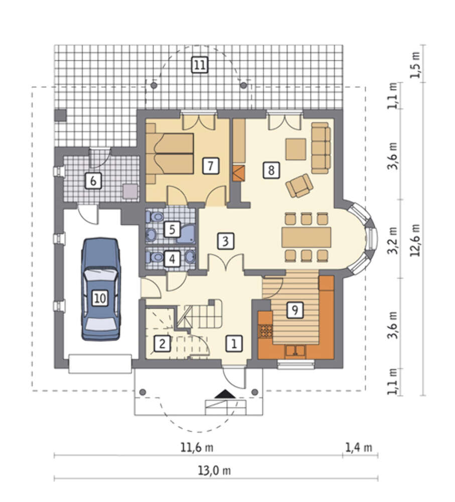 Проект содержит три раздела – АрхитектурныйКонструктивный и Инженерный: водоснабжение, отопление, вентиляция, канализация, электроснабжение (приобретается за дополнительную плату) + Пояснительная записка.