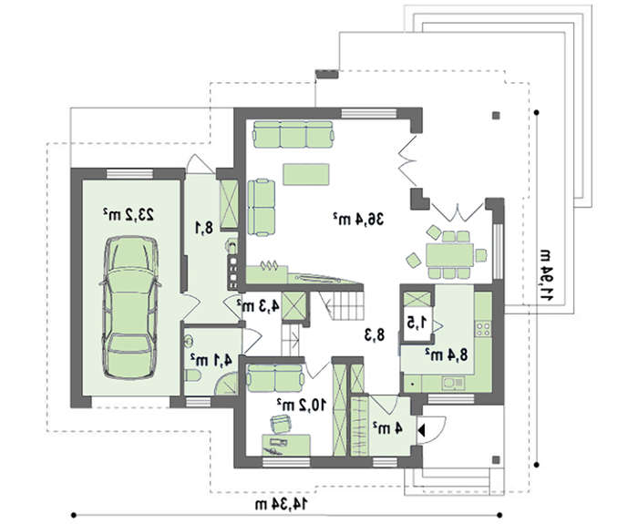 проект в зеркальном отображении позволит органично вписать дом в окружающий ландшафт.