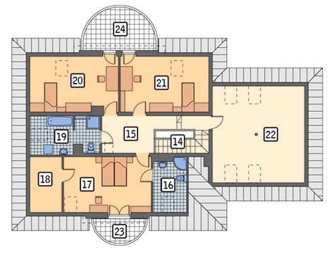 Проект содержит три раздела – Архитектурный, Конструктивный и Инженерный: водоснабжение, отопление, вентиляция, канализация, электроснабжение (приобретается за дополнительную плату) + Пояснительная записка.