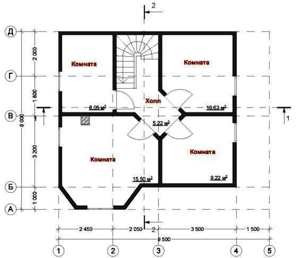 • разрезы по осям