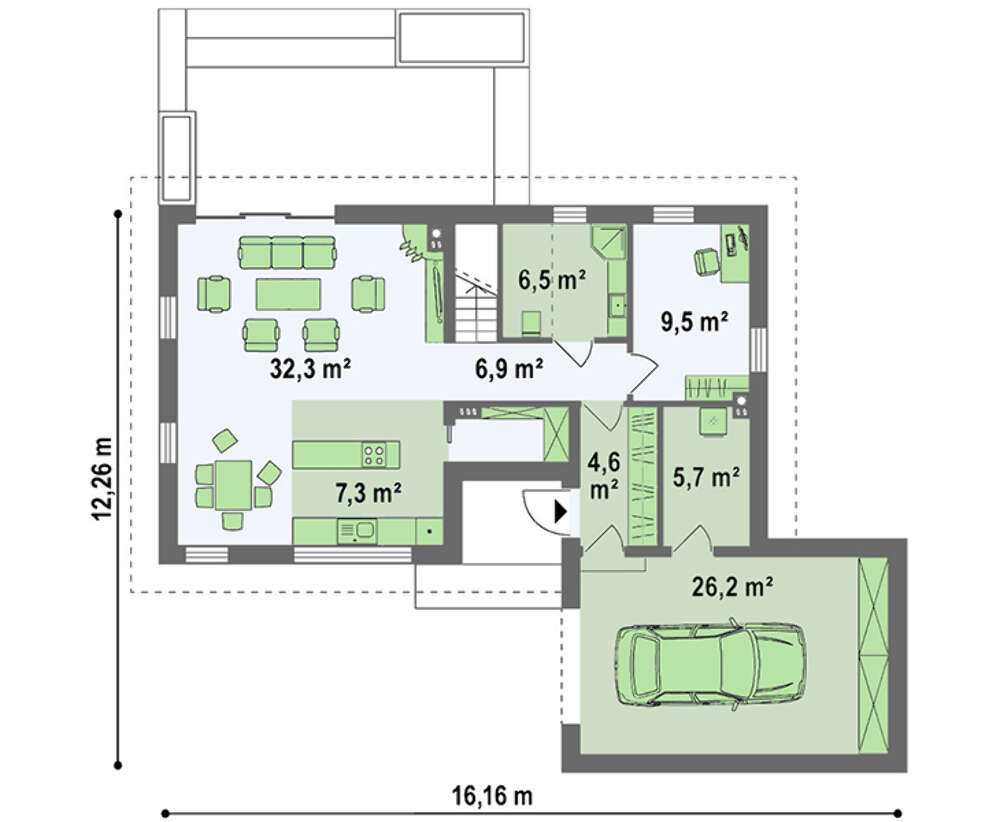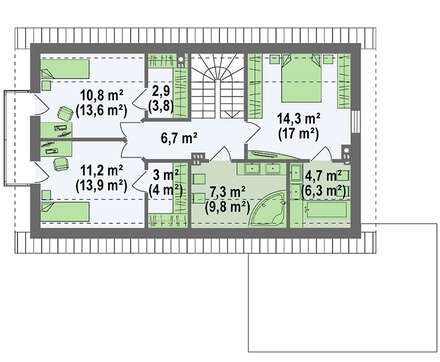 • 4M7038 Проект мансардного дома с гаражом площадью 174 кв.м.
