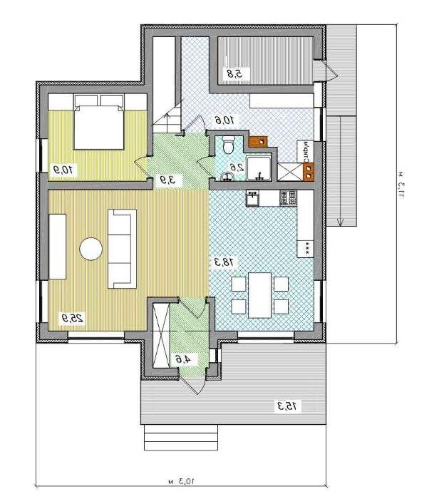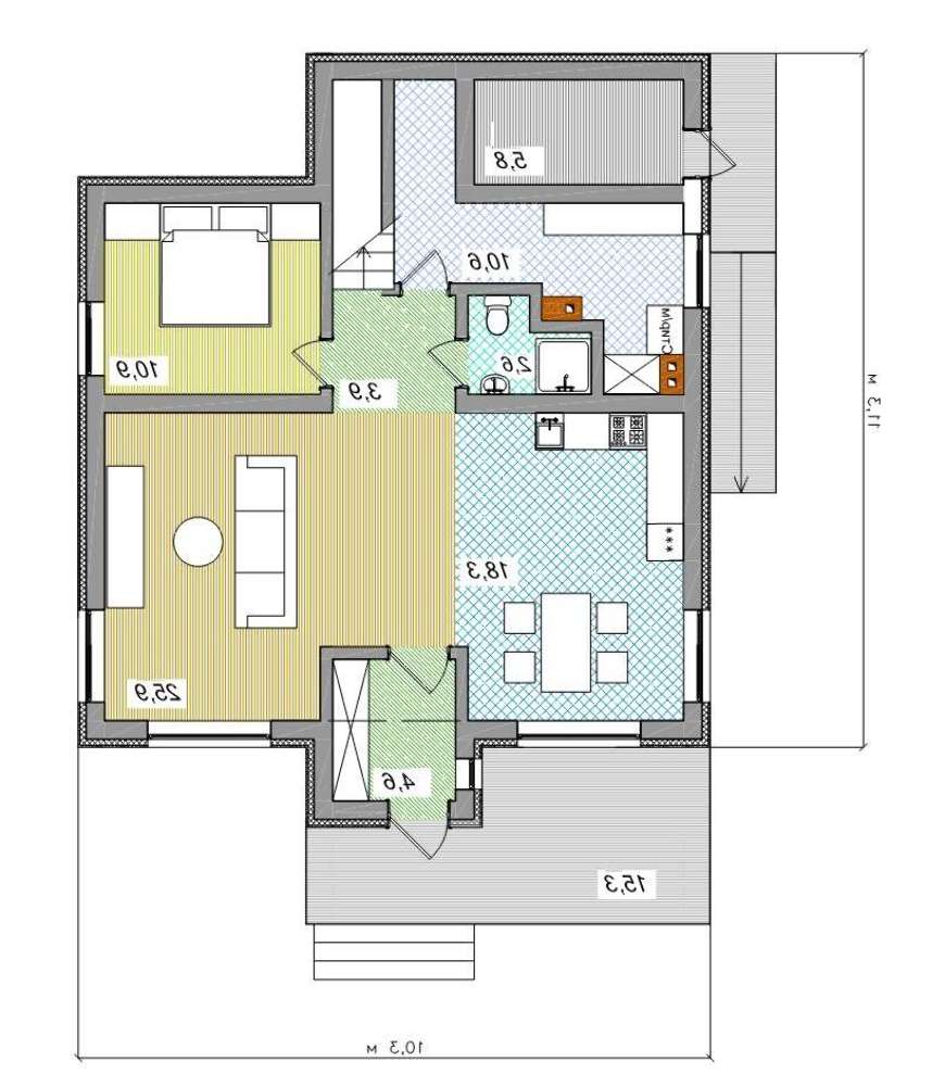 проект в зеркальном отображении позволит органично вписать дом в окружающий ландшафт.