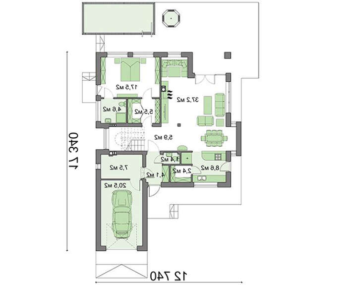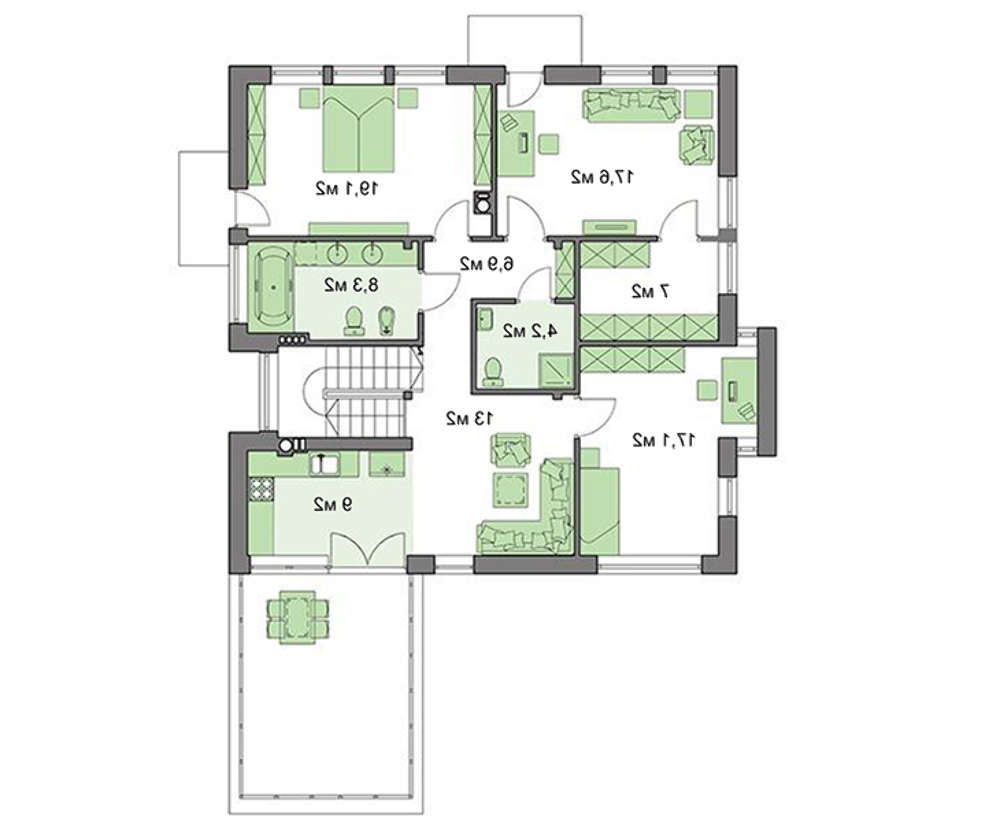 проект в зеркальном отображении позволит органично вписать дом в окружающий ландшафт.