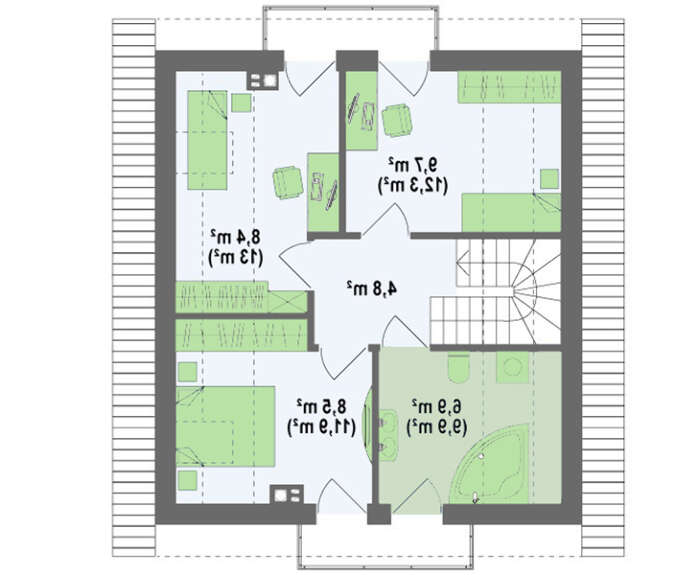 проект в зеркальном отображении позволит органично вписать дом в окружающий ландшафт.
