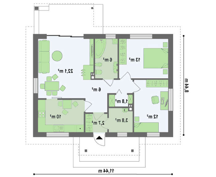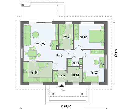 | Минимальный размер участка(длина): | 19.44 м |