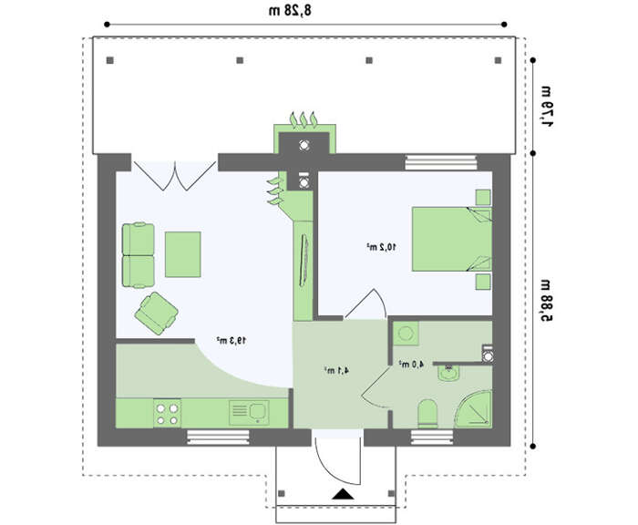 проект в зеркальном отображении позволит органично вписать дом в окружающий ландшафт.