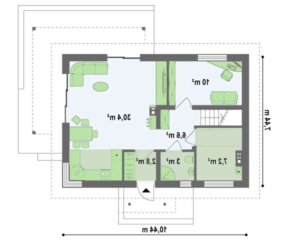 Проект небольшого дачного коттеджа с угловым окном в кухне 4M236