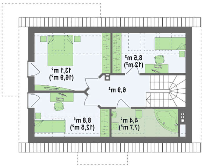 Проект небольшого дома с мансардой и угловым окном | DOM4M Россия | Архитектурное бюро DOM4M Россия
