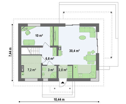 Проект небольшого дачного коттеджа с угловым окном в кухне 4M236