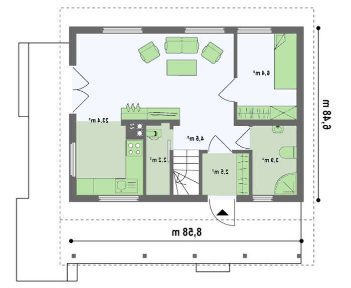 • 4M408 Проект компактного дачного домика с фронтальной террасой