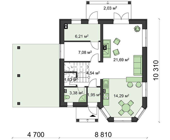 • 4M010 Проект загородного дома с навесом для авто