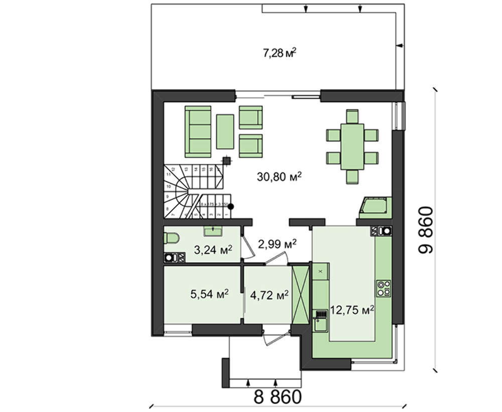 • 4M024 Проект небольшого классического дома с современным фасадом