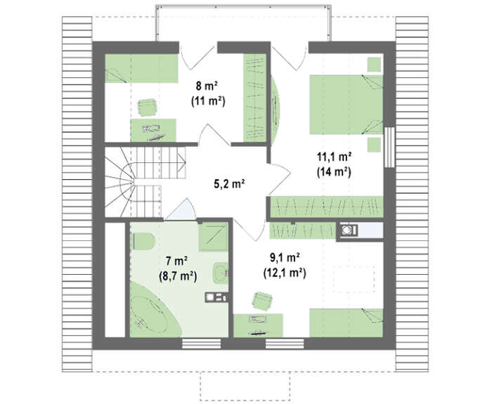 Проект содержит три раздела – Архитектурный, Конструктивный и Инженерный: водоснабжение, отопление, вентиляция, канализация, электроснабжение (приобретается за дополнительную плату) + Пояснительная записка.