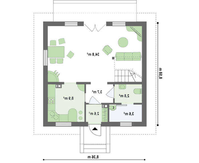 проект в зеркальном отображении позволит органично вписать дом в окружающий ландшафт.