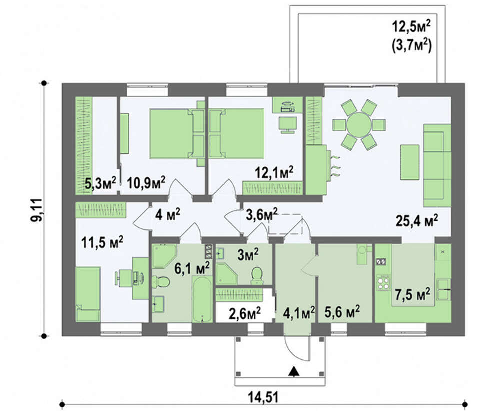 Проект небольшого одноэтажного дома площадью 105 кв.м
