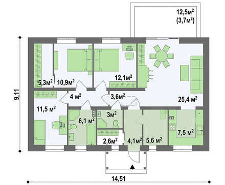 • 4M7037 Проект небольшого одноэтажного дома площадью 105 кв.м