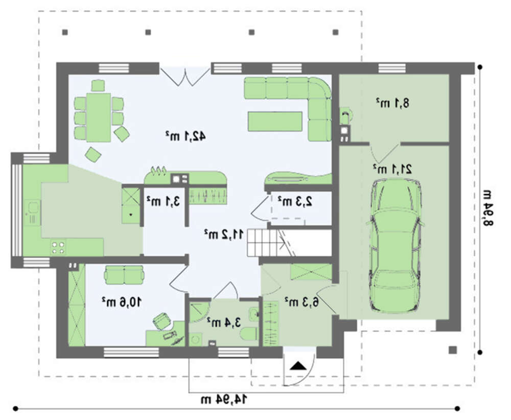 • 4M232 Проект одноэтажного дома с террасой над гаражом