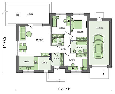 • 4M314a Проект небольшого одноэтажного коттеджа с гаражом на одну машину