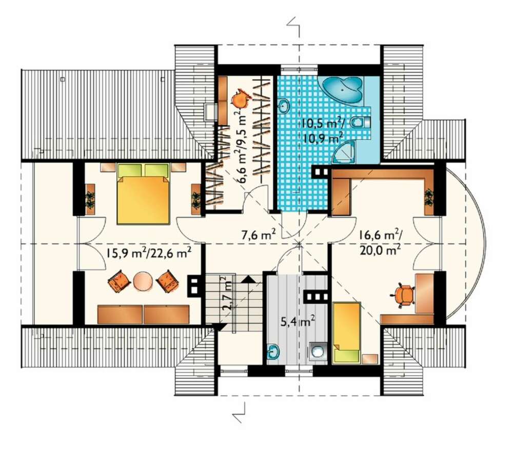 Проект небольшого особняка с мансардой и верандой 4M3073