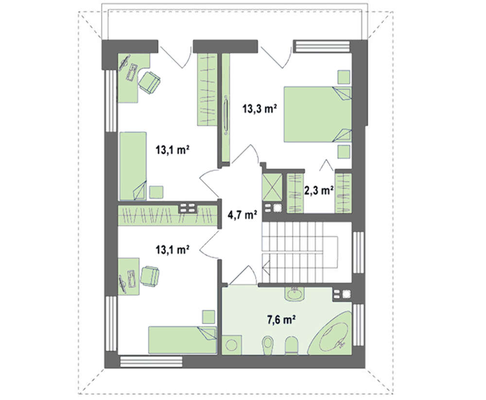 Проект содержит три раздела – АрхитектурныйКонструктивный и Инженерный: водоснабжение, отопление, вентиляция, канализация, электроснабжение (приобретается за дополнительную плату) + Пояснительная записка.