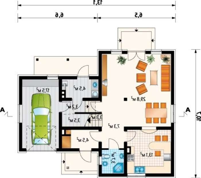 проект в зеркальном отображении позволит органично вписать дом в окружающий ландшафт.