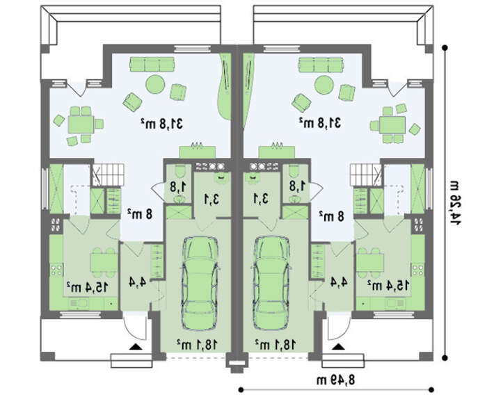 проект в зеркальном отображении позволит органично вписать дом в окружающий ландшафт.
