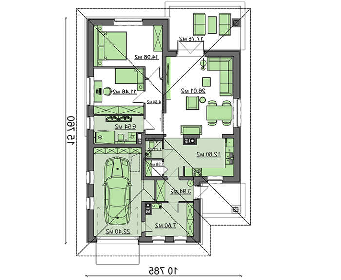 Проект содержит три раздела – АрхитектурныйКонструктивный и Инженерный: водоснабжение, отопление, вентиляция, канализация, электроснабжение (приобретается за дополнительную плату) + Пояснительная записка.