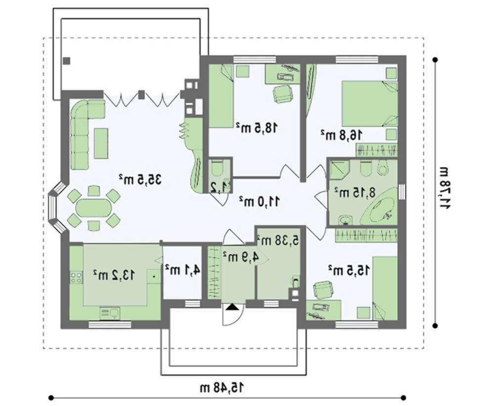 проект в зеркальном отображении позволит органично вписать дом в окружающий ландшафт.