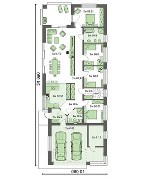 • 4M126 Одноэтажный дом для узкого участка с четырьмя спальнями